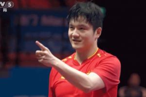 樊振東賽后比了個(gè)1,比了個(gè)2的手勢(shì),然后向觀眾致意。