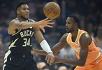 本場(chǎng)比賽,字母因傷提前離場(chǎng)。離場(chǎng)前他出戰(zhàn)13分鐘,10中6,罰球3中2拿到14分5籃板4助攻1搶斷,出現(xiàn)4次失誤。