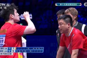 樊振東9-3領(lǐng)先被王楚欽追成9-7,此時(shí)樊振東叫了暫停。