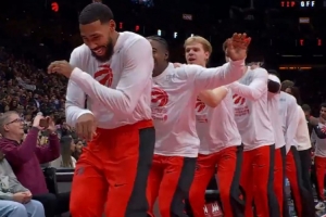 GIF-猛龍賽前儀式 排著長(zhǎng)龍突然起舞