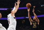 第三節(jié)上來(lái)不久巴特勒連得4分,勇士隊(duì)80-70取得10分的領(lǐng)先優(yōu)勢(shì)。中段過(guò)后開(kāi)拓者隊(duì)打出一波10-2的攻擊波,樂(lè)福的三分幫助球隊(duì)追到89-92只差3分。三節(jié)比賽結(jié)束時(shí),勇士隊(duì)97-94領(lǐng)先開(kāi)拓者。