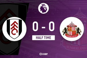 上半場比賽結束,富勒姆0-0桑德蘭。
