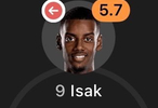 值得注意的是,伊薩克近15次在俱樂(lè)部和國(guó)家隊(duì)出場(chǎng),只打入了1球。