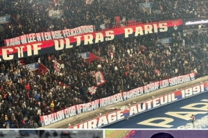 巴黎球迷此役拉出橫幅,祝賀李剛?cè)剩▉喿懵?lián)最佳國(guó)際球員)和阿什拉夫(非洲足球先生)獲獎(jiǎng)。