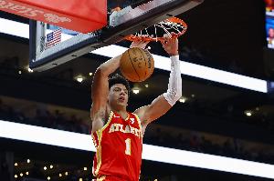 GIF-杰倫·約翰遜封蓋霍金斯,隨后一條龍完成滑翔暴扣