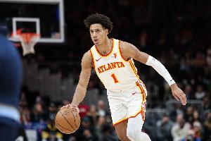 老鷹球員杰倫·約翰遜在第一節(jié)手感不佳并且失誤頻頻的情況下,第二節(jié)找回狀態(tài),用一次一條龍暴扣帶領(lǐng)球隊打出勢頭。