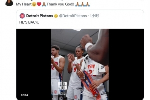 賽后,艾維的母親轉(zhuǎn)發(fā)了活塞官方發(fā)布的賽后慶祝艾維復出視頻,并配文:我的小心肝??!感謝上帝!