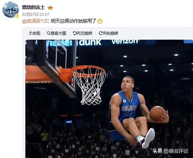 有球迷和博主調(diào)侃俞澤辰使用戈登和拉滿兩個(gè)經(jīng)典動(dòng)作。