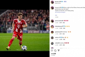 他也在賽后通過社媒曬出自己的比賽照并配文:“在安聯(lián)球場的精彩一夜,球隊的表現(xiàn)也太出色了!感謝球迷們,我們會繼續(xù)前進?!?/p>