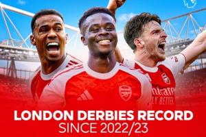 體育資訊10月24日訊 本輪英超阿森納將在主場迎戰(zhàn)水晶宮,今日英超官方社媒發(fā)布圖片,統(tǒng)計(jì)英超七支倫敦球隊(duì)自2022/23賽季以來倫德德比積分榜,阿森納以87分高居榜首,切爾西第二熱刺第三。