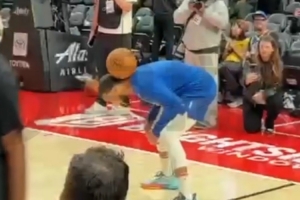 勇士背靠背挑戰(zhàn)開拓者,賽前在球迷的呼喊聲中,庫里和助教玩足球傳球,之后三分命中。