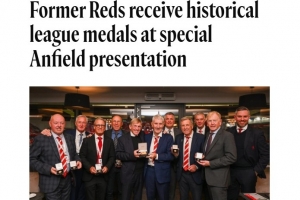 體育資訊10月16日訊 利物浦俱樂部近日在安菲爾德舉行了一場特別的頒獎儀式,向14名前球員頒發(fā)了聯(lián)賽冠軍獎牌,以表彰他們?yōu)榍蜿牃v史上的20座頂級聯(lián)賽冠軍所做出的貢獻(xiàn)。由于當(dāng)時出場次數(shù)資格限制,這些球員在當(dāng)年遺憾地錯過了獲得獎牌的機(jī)會。