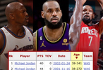 據(jù)統(tǒng)計,杜蘭特加入了詹姆斯(3次)和喬丹(2次)的行列,成為NBA歷史上僅有的三位在37歲或以上年齡單場比賽得到至少37分且沒有失誤的球員之一。