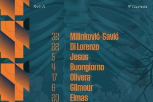 那不勒斯首發(fā):32-瓦尼亞-米林科維奇-薩維奇、22-迪洛倫佐、5-胡安-熱蘇斯、4-布翁喬爾諾、17-馬蒂亞斯-奧利維拉、6-吉爾莫、20-埃爾馬斯、99-安古伊薩、21-波利塔諾、27-洛倫佐-盧卡、70-諾阿-朗