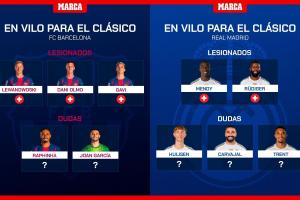 體育資訊10月17日訊 國(guó)際比賽日結(jié)束,聯(lián)賽回歸。本月月底西班牙國(guó)家德比便將打響,今日馬卡盤(pán)點(diǎn)了國(guó)家德比可能傷缺的人員。