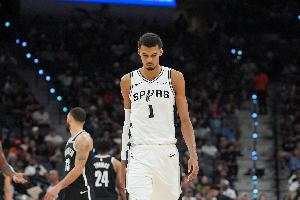 此役,文班亞馬出戰(zhàn)40分鐘,投籃23中10,三分球5中1,罰球8中6,砍下27分18籃板6助攻1搶斷5蓋帽的數(shù)據(jù)。