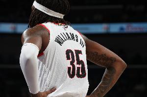 此役開拓者中鋒羅威迎來復(fù)出打了11分鐘2投2中,拿到4分4籃板1助攻1蓋帽。