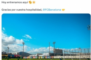 體育資訊11月3日訊 西甲埃爾切官推曬出一張球隊借用巴薩訓(xùn)練基地訓(xùn)練的照片,配文寫道:“今天我們在這里訓(xùn)練,感謝巴薩俱樂部的慷慨??”