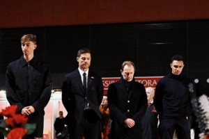 體育資訊11月4日訊 北京時(shí)間周三凌晨的歐冠聯(lián)賽階段第4輪比賽,皇馬將在安菲爾德挑戰(zhàn)利物浦。本場(chǎng)比賽之前,皇馬主帥阿隆索、后衛(wèi)赫伊森和阿諾德、公關(guān)總監(jiān)布特拉格諾一行來(lái)到若塔紀(jì)念碑前,阿隆索獻(xiàn)上鮮花向這名7月因車禍不幸離世的利物浦前鋒表達(dá)敬意。