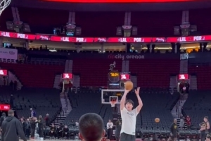 賽前,開拓者跟隊記者@yovic曬出視頻,楊瀚森賽前投籃熱身試投三分手感不俗。