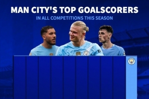 本賽季曼城隊(duì)內(nèi)射手榜: