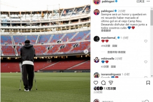 體育資訊11月7日訊 巴薩中場加維更新社媒動態(tài),曬出身處諾坎普球場的照片。