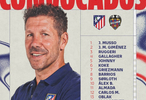 雷速體育11月8日訊 馬德里競技公布了西甲第12輪主場對陣萊萬特的大名單,阿爾瓦雷斯、格列茲曼、巴里奧斯在列,主帥迭戈·西蒙尼之子朱利亞諾·西蒙尼也入選名單。