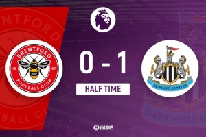 傷停補時5分鐘。上半場比賽結(jié)束,布倫特福德0-1紐卡斯爾聯(lián)。