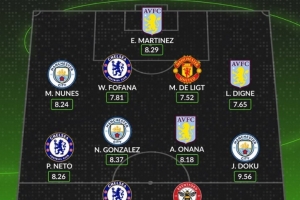 中場:內(nèi)托(切爾西)、尼科-岡薩雷斯(曼城)、奧納納(維拉)、多庫(曼城)
