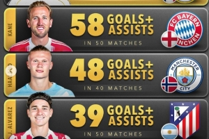 體育資訊11月10日訊 數(shù)據(jù)網(wǎng)站Score90盤點了2025年五大聯(lián)賽前鋒球員,在各項賽事(俱樂部+國家隊)參與進球榜,其中姆巴佩62球居首,以下為具體情況(進球+助攻):