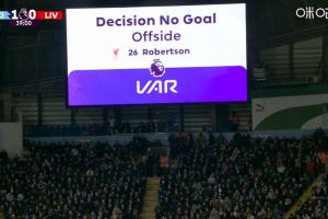 曼城3-0利物浦比賽的第38分鐘,范戴克頭球破門(mén),但VAR判定羅伯遜越位位置干擾,進(jìn)球被判無(wú)效。