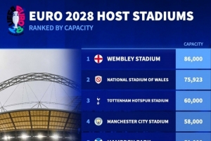 2028年歐洲杯球場容量排名: