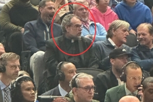 據(jù)隨隊(duì)記者Nick Angstadt報(bào)道,觀眾席上哈里森原來的座位上今天坐著一位牧師。