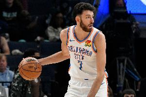 雷霆內(nèi)線霍姆格倫上半場在進(jìn)攻端出手不多,但是效率不錯,防守端更是屢屢送出封蓋。