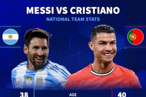 德轉(zhuǎn)對比國家隊數(shù)據(jù):梅西196場115球64助,C羅226場143球46助