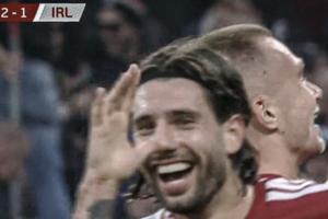 第37分鐘,匈牙利破門(mén)以2-1領(lǐng)先愛(ài)爾蘭↓
