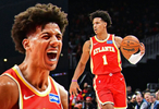 杰倫-約翰遜上周場(chǎng)均24分12板9.3助,老鷹4勝0負(fù);
