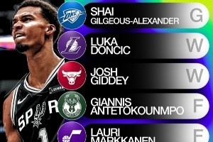 其中世界隊為:亞歷山大、東契奇、吉迪、字母哥、馬爾卡寧、約基奇、文班亞馬、申京。
