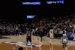 GIF-拉文超遠三分打板命中但先超時啦!