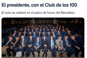 體育資訊11月22日訊 皇馬官網(wǎng)報(bào)道,俱樂(lè)部主席弗洛倫蒂諾在伯納烏球場(chǎng)榮譽(yù)包廂出席傳統(tǒng)“百人俱樂(lè)部”午宴,設(shè)宴招待俱樂(lè)部最資深的會(huì)員們。