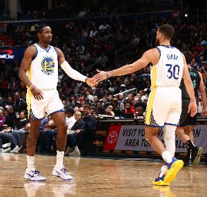 勇士首發(fā):庫里、波杰姆斯基、巴特勒、庫明加、追夢格林。